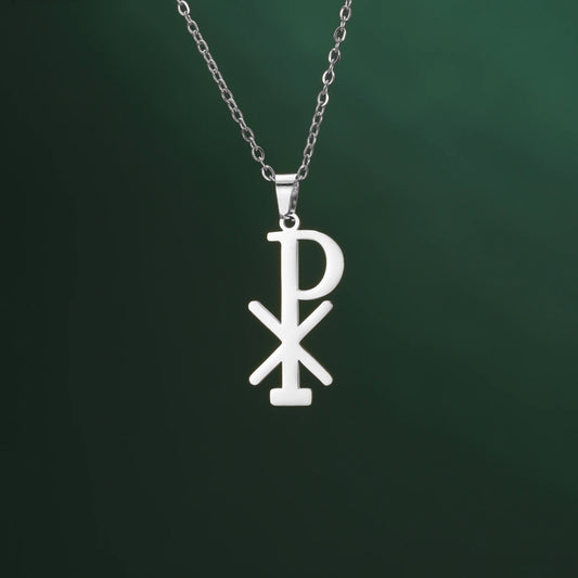 Collier Chi Rho en acier inoxydable, pendentif croix chrétienne